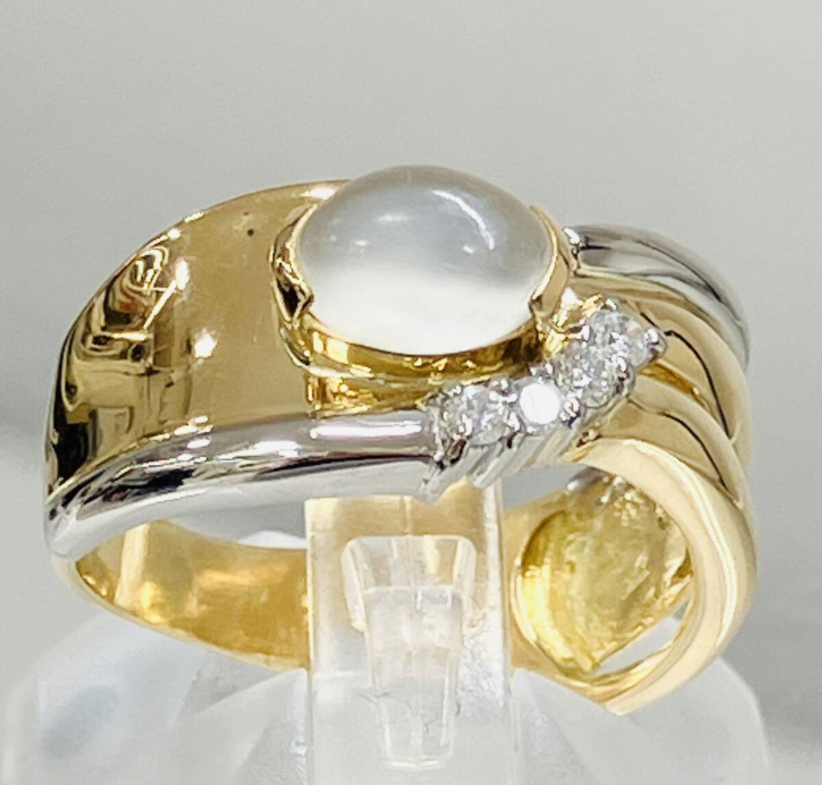 K18 /Pt900 天然ムーンストーン 天然ダイヤモンド 0.10ct 13.5号 リング 店舗受取可