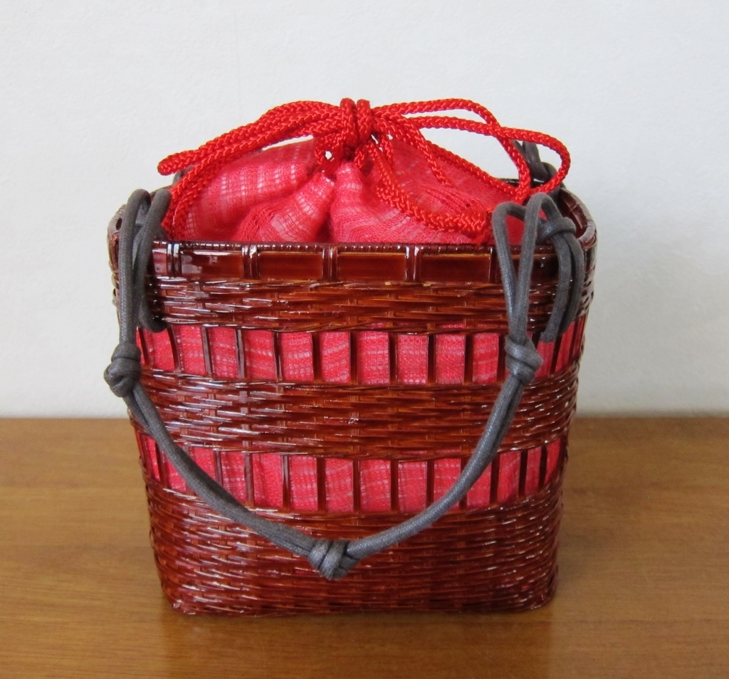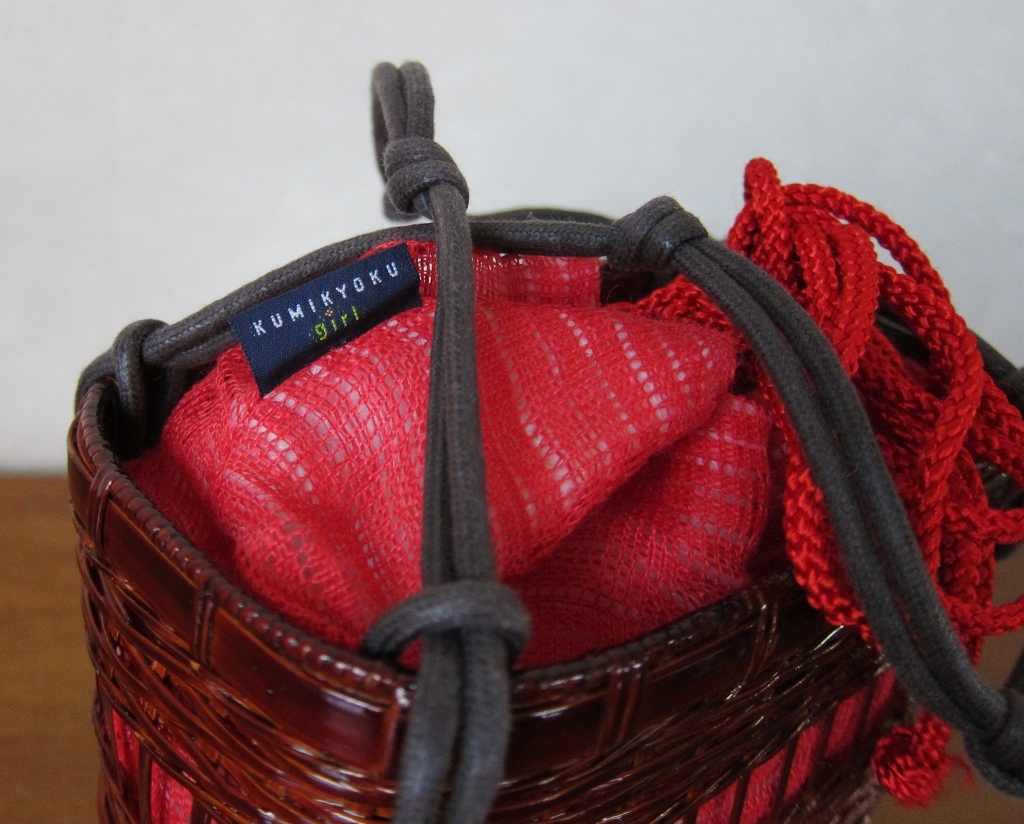 Product name: 京都伊勢丹購入 組曲girl 浴衣用巾着かごバッグ 竹製 茶色×赤 2回使用 ゆかた用籠バッグ 夏着物用かごバッグ 和装用バッグ