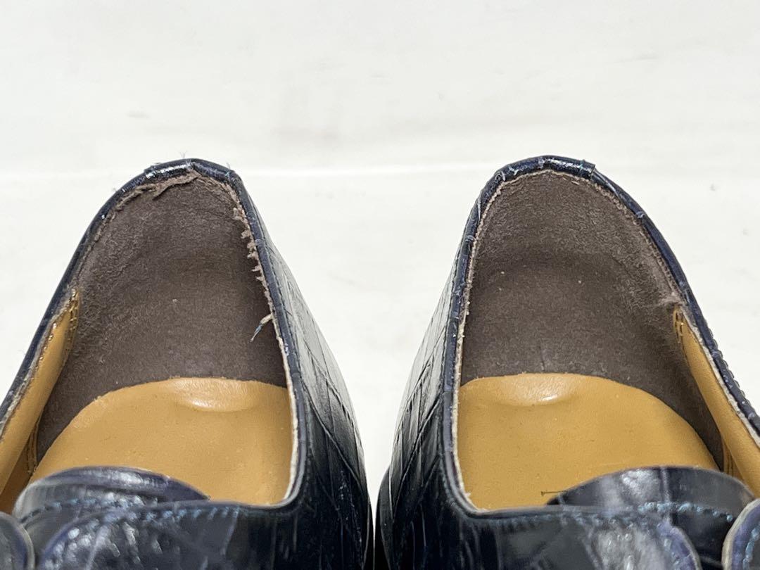 即決★良品 MODELLO★25cmEEE レザークロコ型押しシューズ モデロ ネイビー ドレス クラシック 本革 革靴