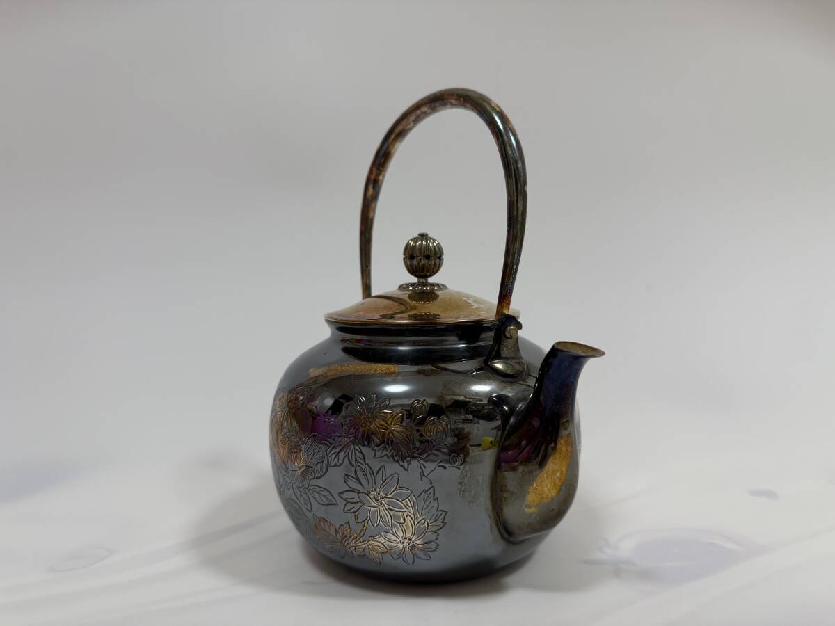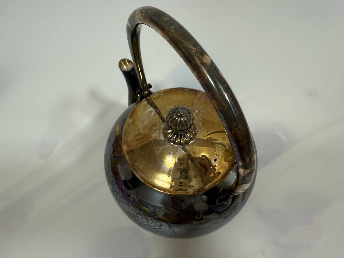 Product name: 時代 純銀製 中川浄益造 草花紋様彫り 望月形 湯沸 工芸品 古美術品 銀瓶 煎茶道具
