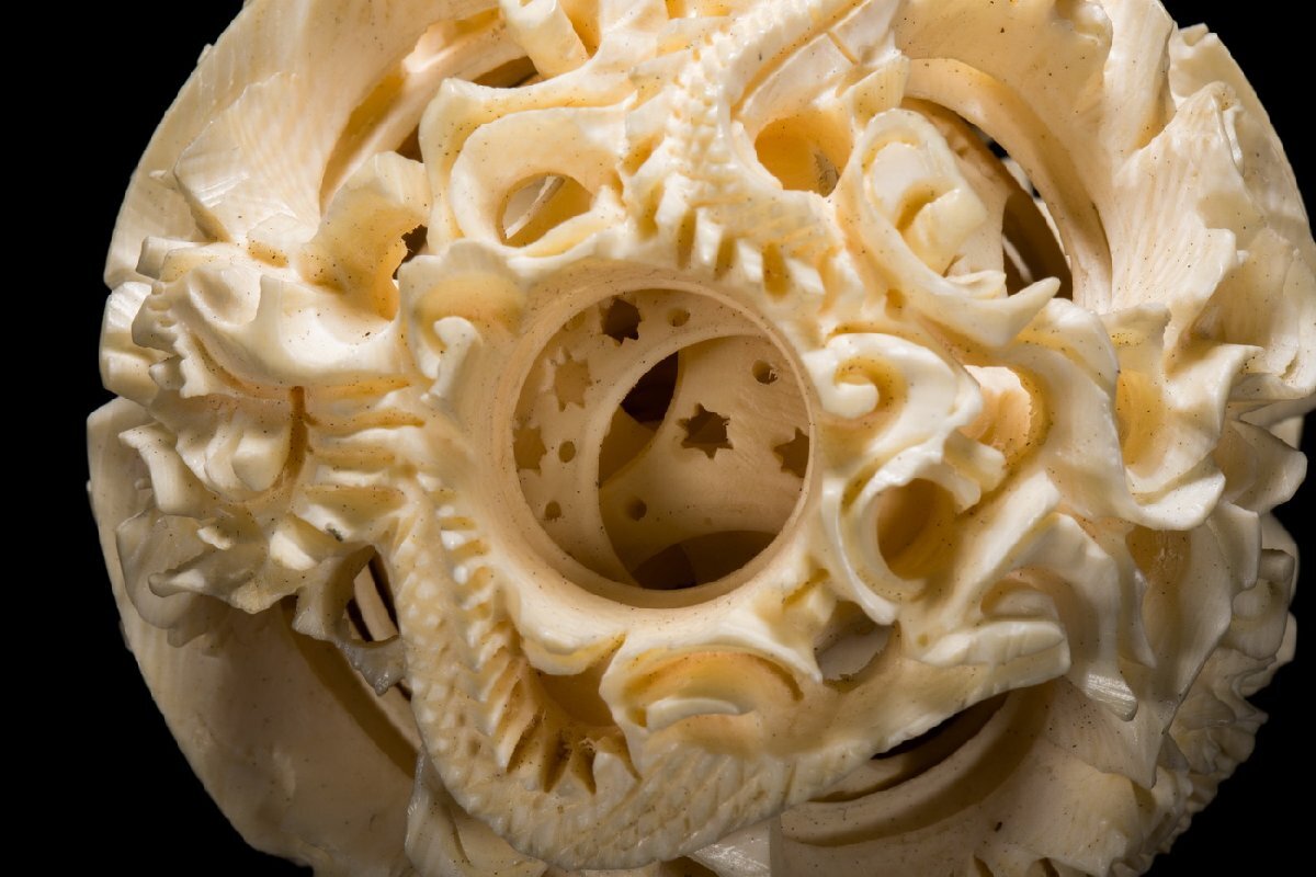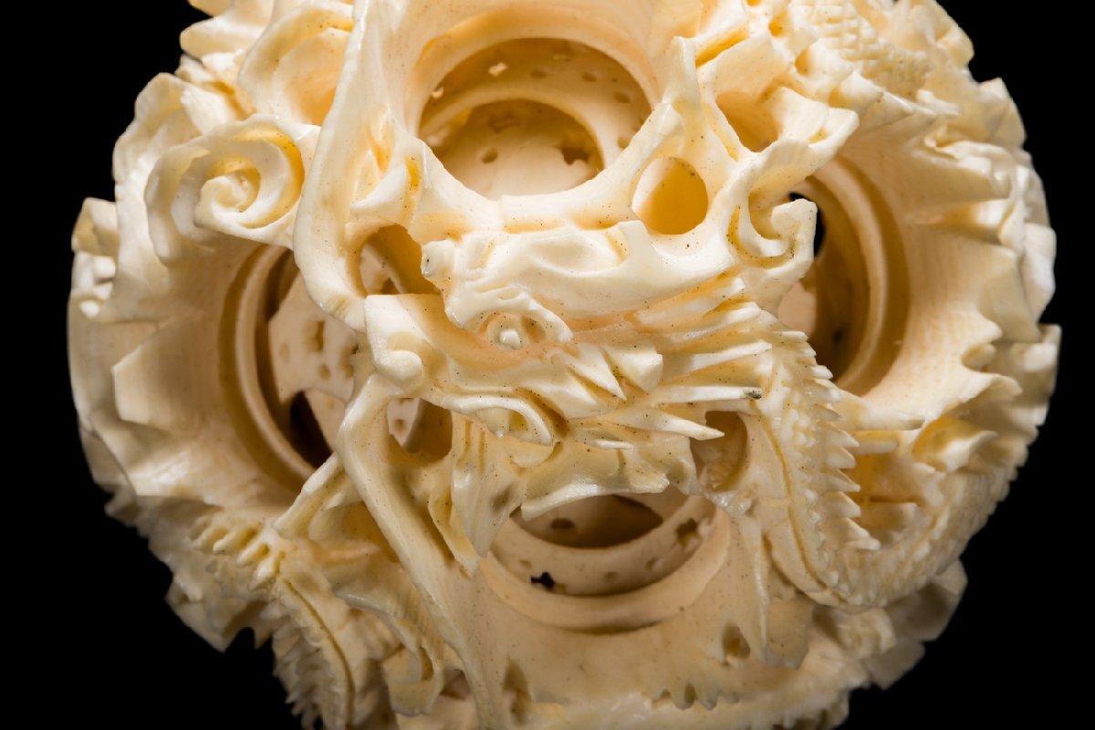 【善古堂】特殊天然材 特殊白材 龍紋鬼工天球 置物 豪華芯料使用 細密彫刻 材質保証 本物保証 高級美術品1125-136S2