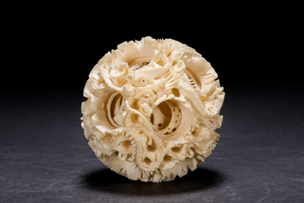 Product name: 【善古堂】特殊天然材 特殊白材 龍紋鬼工天球 置物 豪華芯料使用 細密彫刻 材質保証 本物保証 高級美術品1125-136S2
