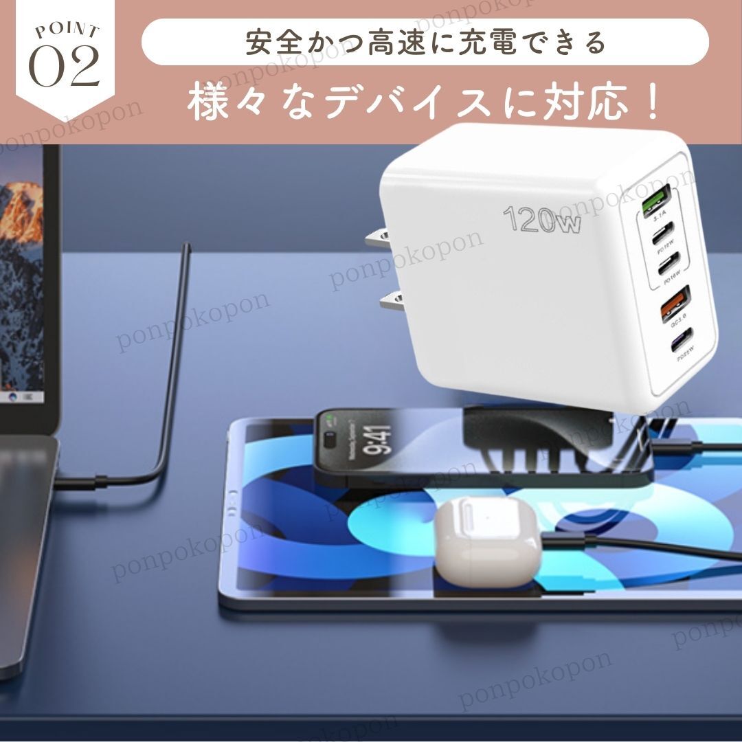 急速充電器 120W 6A セット PD タイプC 同時充電 高速 USB スマホ 携帯 iPhone iPad Android AC QC3.0 5ポート 充電ケーブル