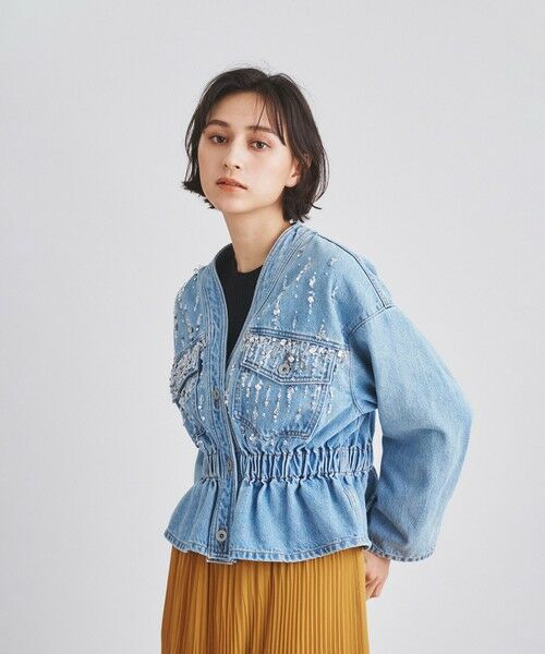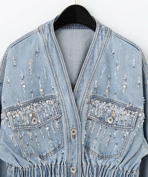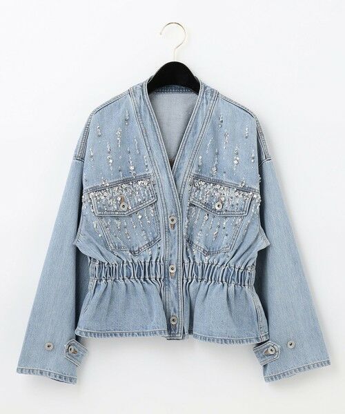 11onのデニムにビジュー刺繍を施して、女性らしくブラッシュアップしたジャケット。