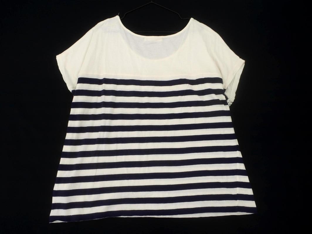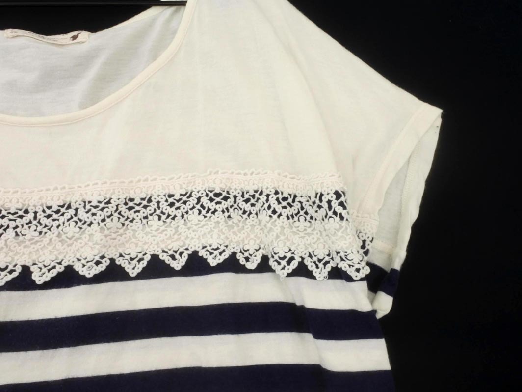 Product name: ネコポスOK earth music&ecology アースミュージック&エコロジー レース ボーダー カットソー sizeF/白x紺 ■◆ ☆ ffb6 レディース