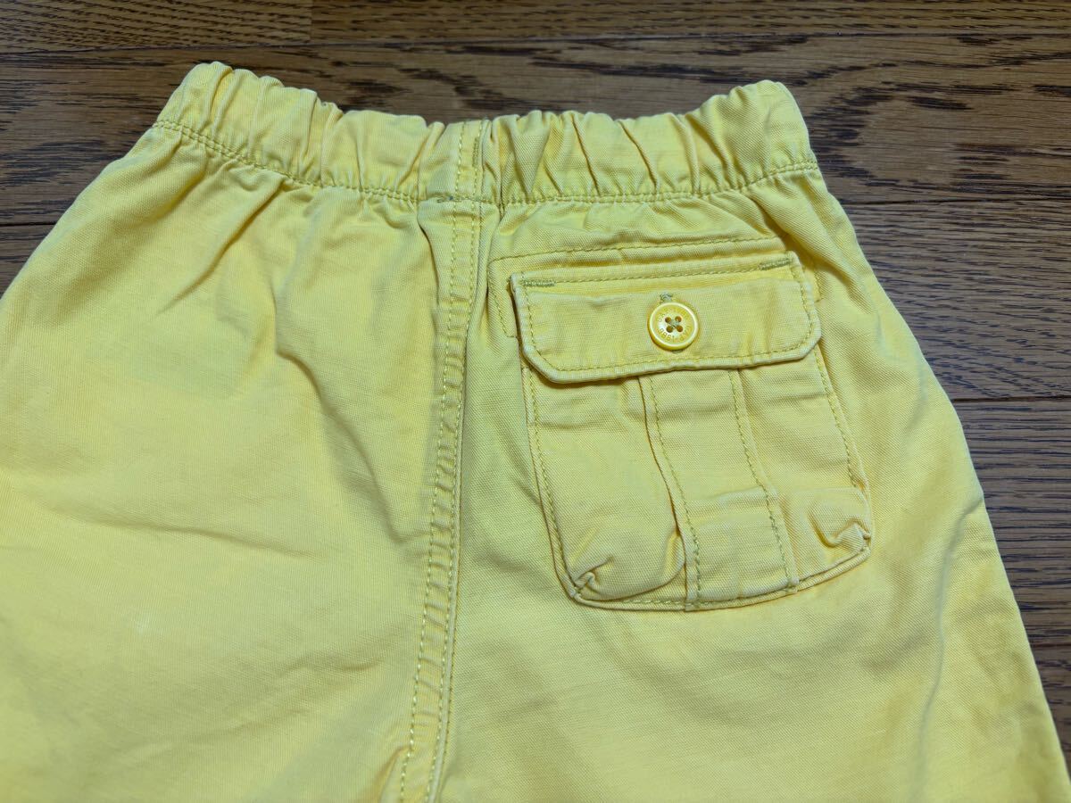 ☆ブランド・・・ギャップ   ☆お色・・・黄色  ☆サイズ・・・90   平置きの状態で、ウエスト・・・19.5cm   股下・・・8cm   です。   素人寸法ですので参考程度にお考え下さい。  ☆ハリのあるややしっかりめ素材のハーフパンツです。  鮮やかな黄色が可愛いお品です。  ☆着用回数は少なめですが、多少色褪せがあります。  また、多少の生地の馴染み、シワなどがあるかと思います。  ご理解の上ご入札下さい。   ☆細かいことをお気にされる方、神経質な方は入札をご遠慮下さい。  ☆自己紹介も必ずお読み下さい。