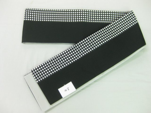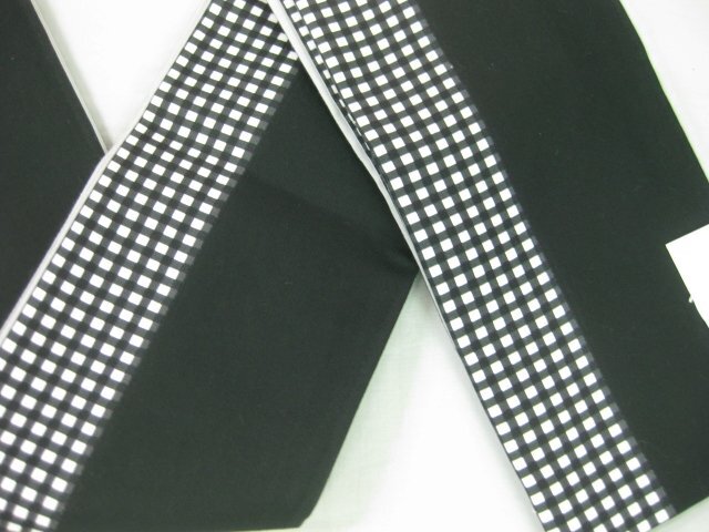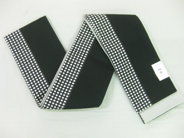 Product name: 今だけ値下げ 半幅帯 四寸帯 細帯 角通し白黒(格子)端黒-A