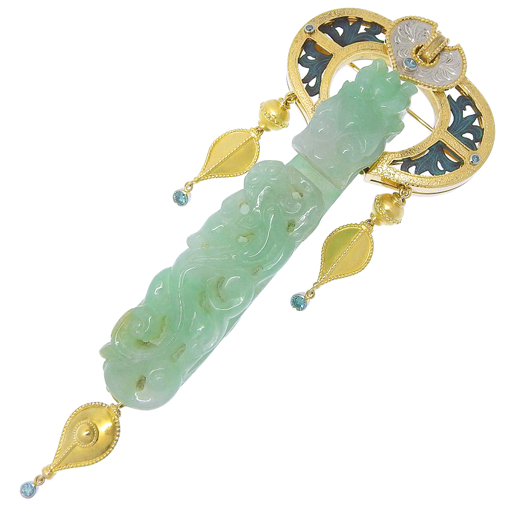 NOBUKO ISHIKAWA 石川暢子 S0.33/D0.40 ブローチ K18YG×ヒスイ×Pt900プラチナ 約75.7g レディース【I130425038】中古