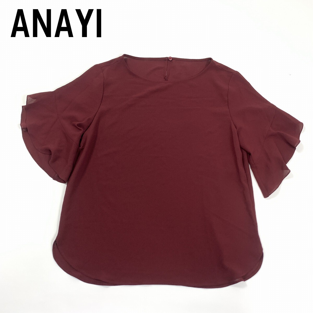 ANAYI アナイ 半袖トップス ブラウス 袖フレア 赤系 ワインレッド ボルドー 38 YC455
