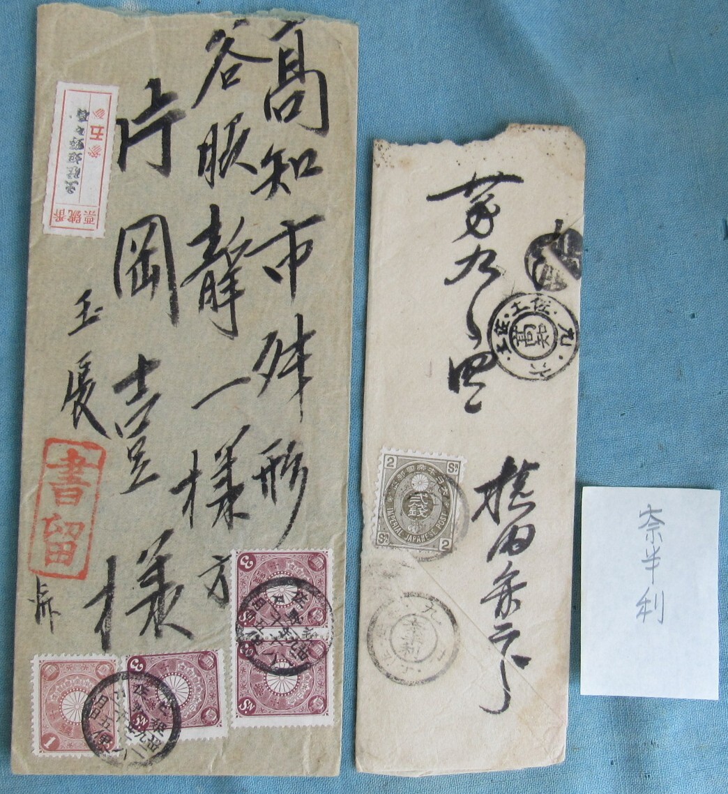 二重丸消印/土佐高知KGの到着印があります、菊切手の方は書留便です、