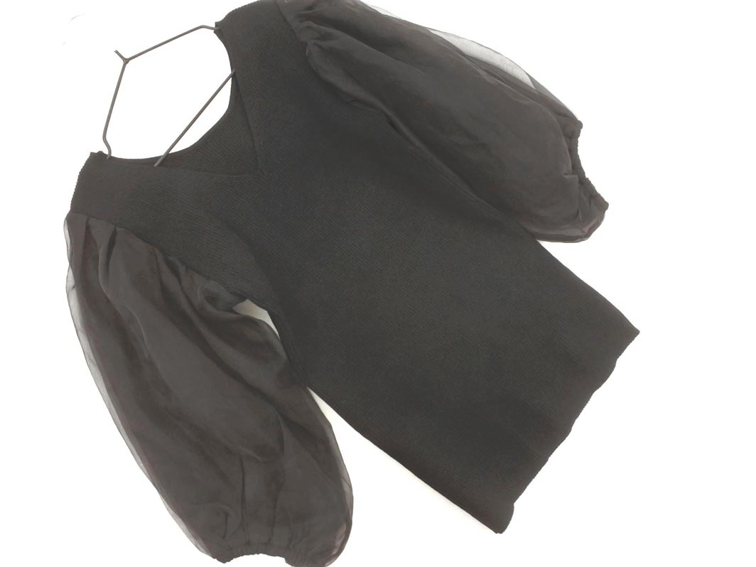 Product name: rienda リエンダ オーガンジー チュール ボリュームスリーブ リブ カットソー sizeF/黒 ■◆ ☆ ffb9 レディース