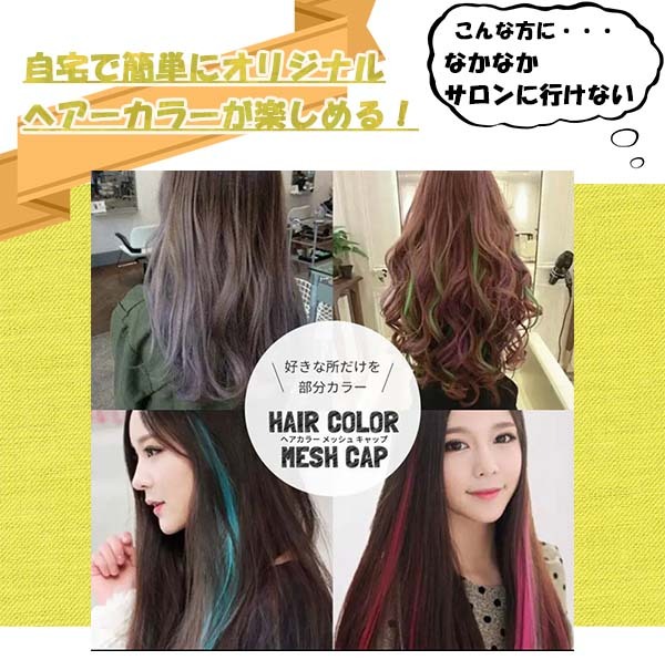ヘアカラー メッシュ シリコンキャップ ハイライト ブリーチ かぎ針付き