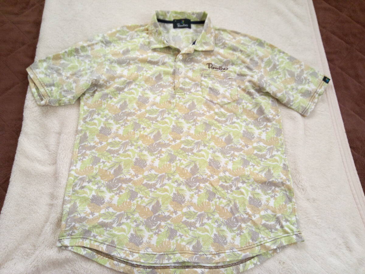 超美品 ブリヂストン パラディーゾ 葉柄ボタニカルメンズポロシャツ LL