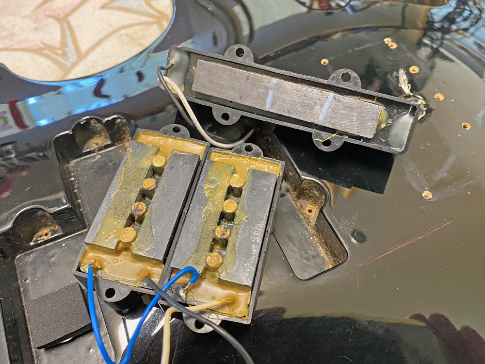 【変更点】このモデルのPUは本来アクティブですが、一般的なパッシプPUがマウントされています。今回それに合わせて電気系パーツは全てパッシブ用(新品)に変更してます。ペグとブリッジも交換されていて、これらはあまり質の良くないノーブランドですが、PUは上質で、パワー、音質、各弦の音量バランスも非常に良く、十分にクオリティーの高いものです。