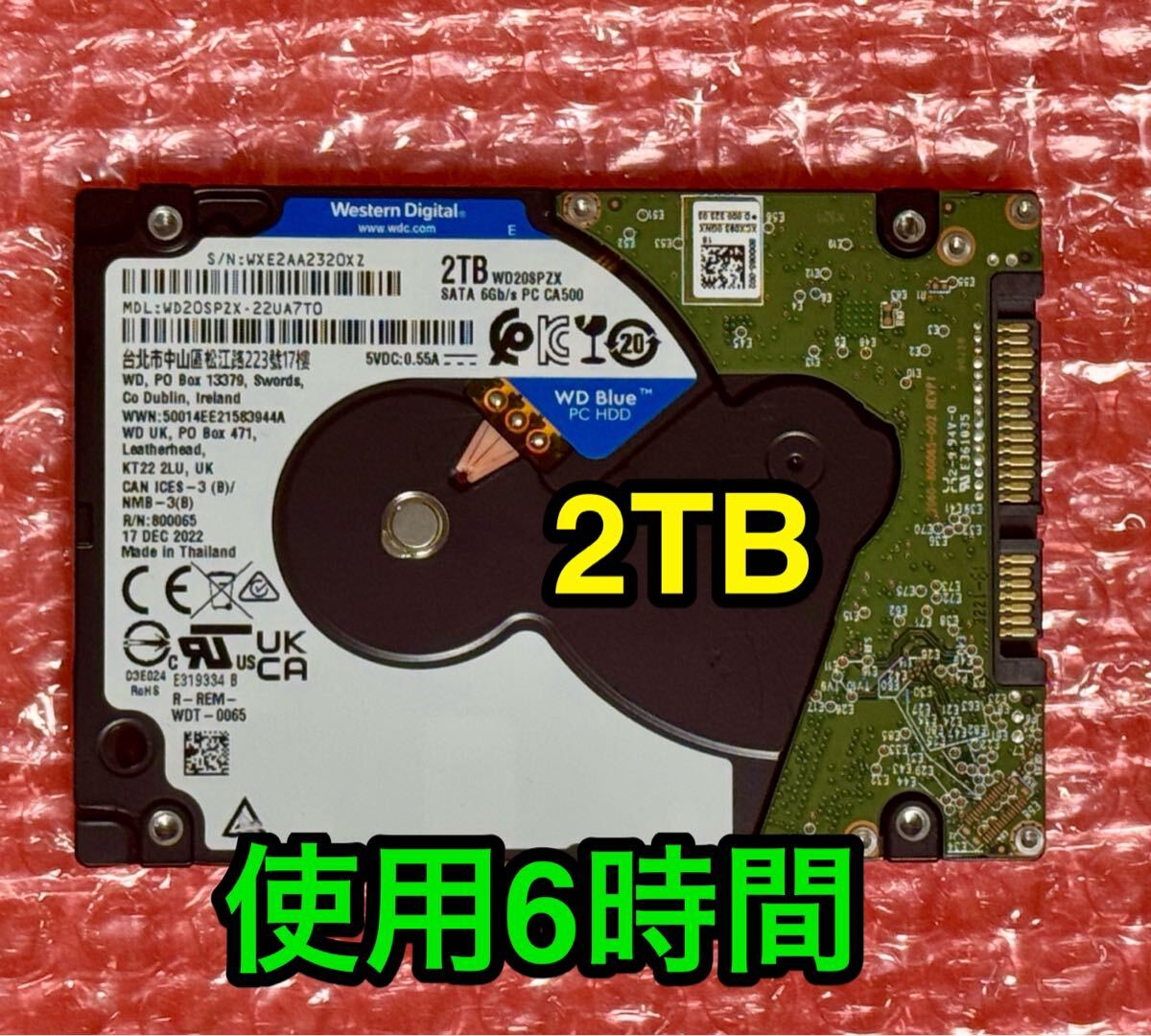 【送料無料★使用時間《6時間》2TB】ウエスタンデジタル Western Digital WD20SPZX/ 2.5インチ HDD [7mm]/SATA★2022年12月製