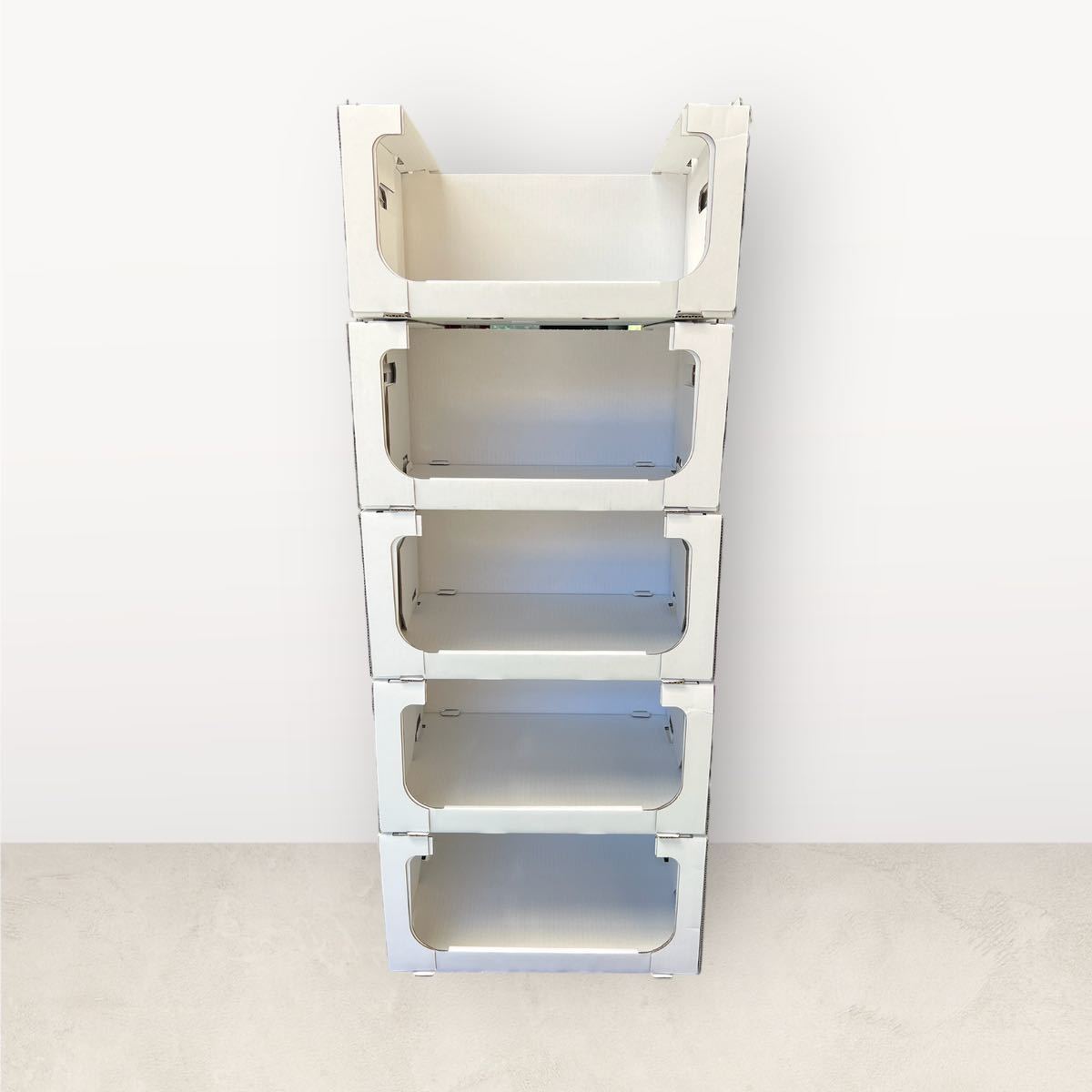 軽量のため女性でも設置・スタッキングしやすく、また簡単に処分いただけます。