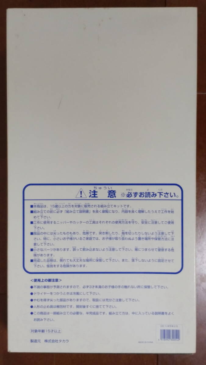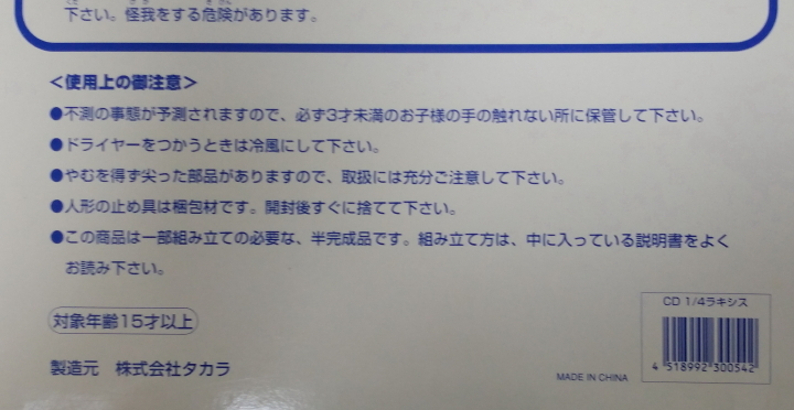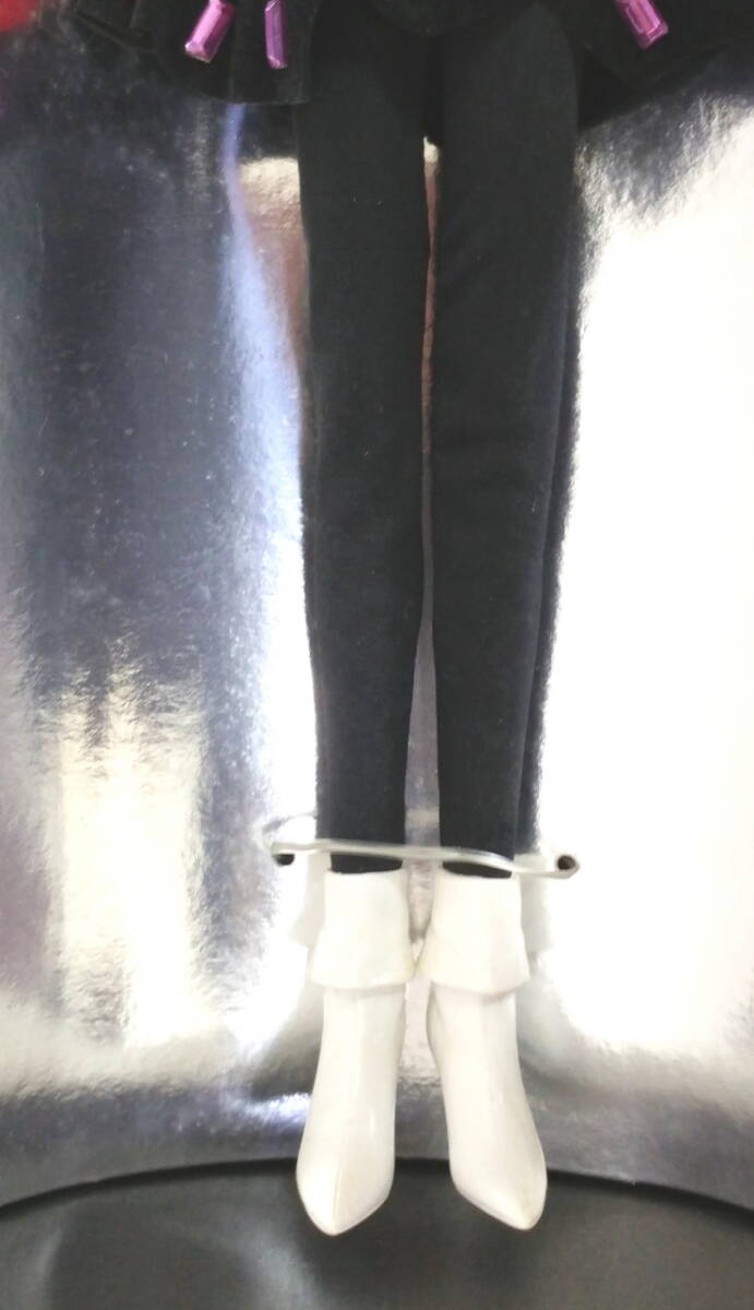 植毛ヘッド、衣装は布製、ボディはソフトビニール。着せ替えドール風ですが衣装の脱着は難しいかもしれません