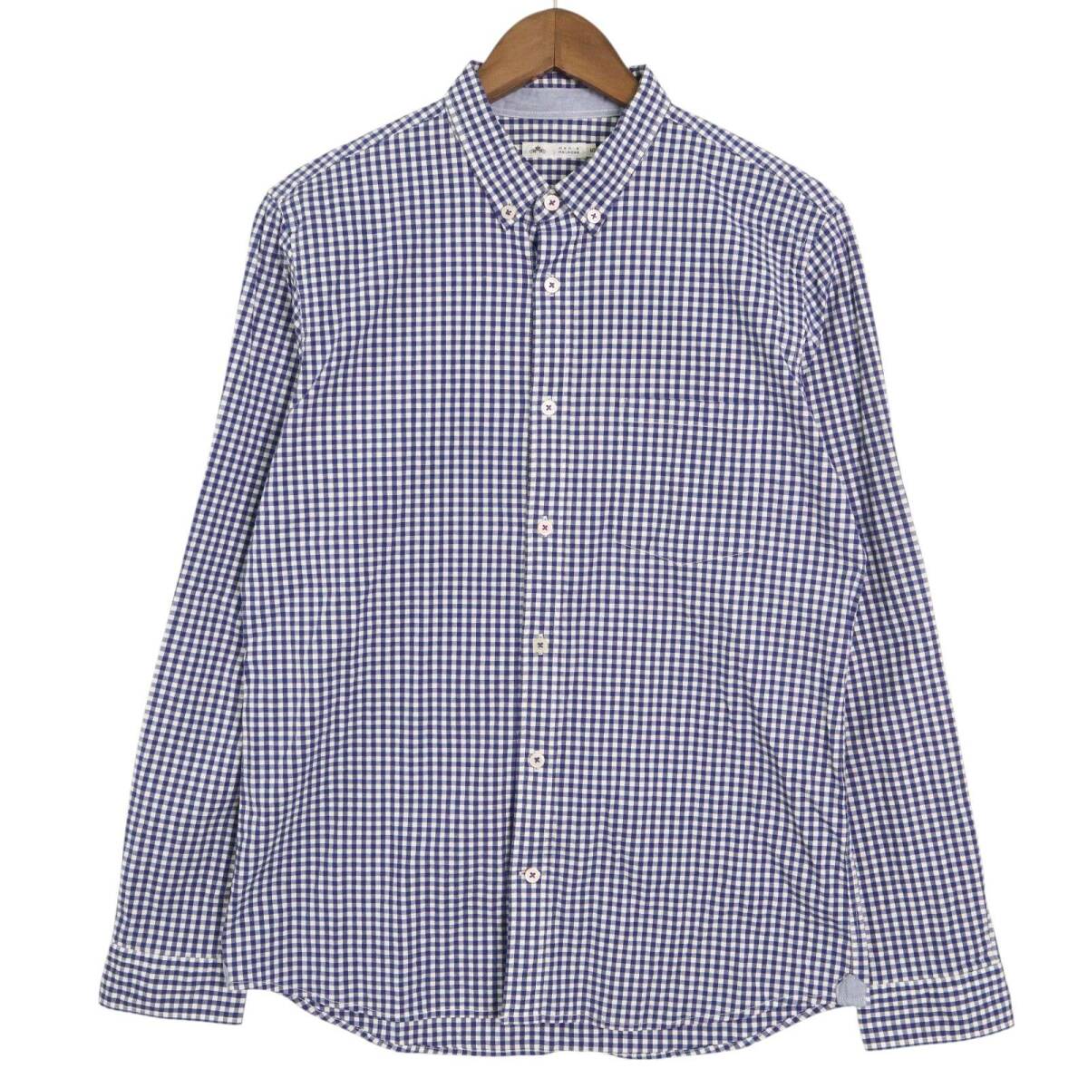 Product name: MEN'S MELROSE メンズメルローズ 通年 ストレッチ★ 長袖 ギンガムチェック ボタンダウン シャツ Sz.5 メンズ ネイビー