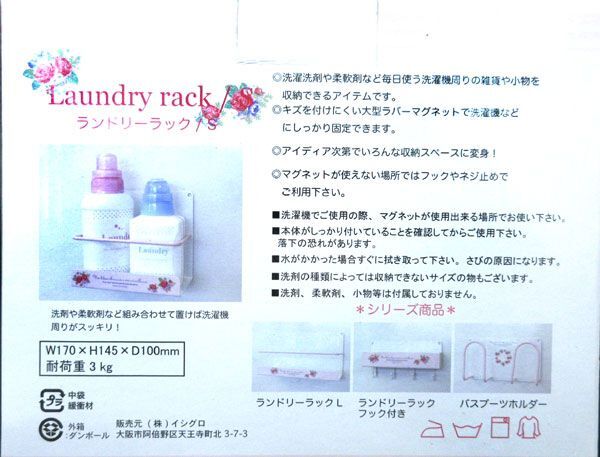 洗濯機の本体にピタッと貼るだけ!便利な収納ラックです。