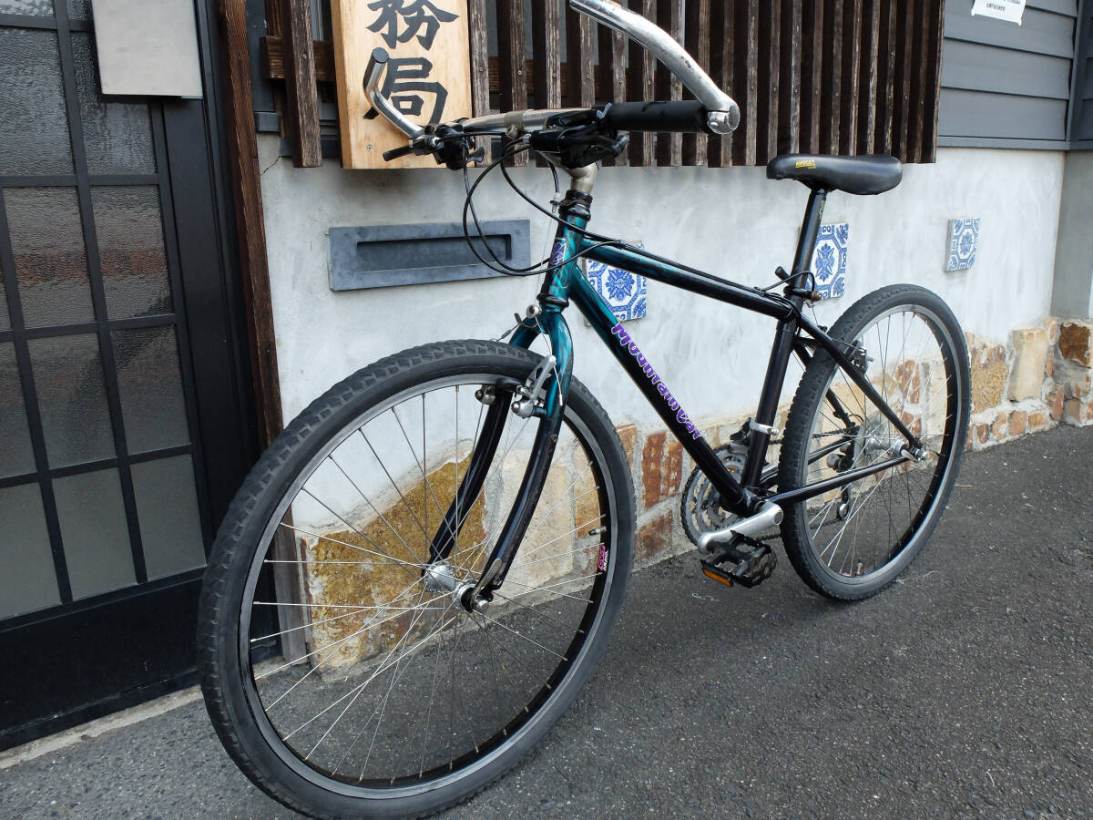 コンポーネンツはシマノのDEORE LXですがシフター/ブレーキレバーは遠くない過去に自転車屋さんの手が入った様子、後年のシマノ製に交換されております。