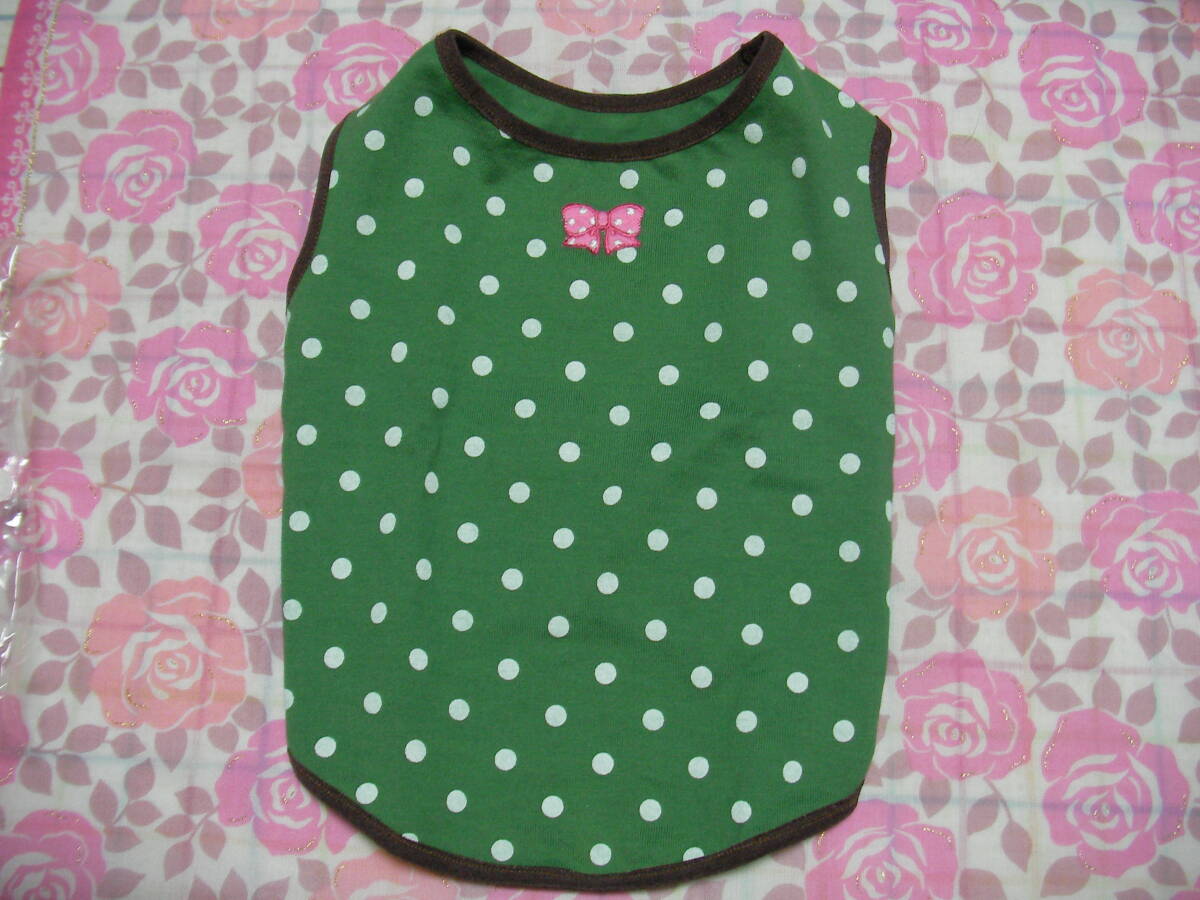 ハンドメイド☆犬服☆小型犬☆タンクトップ☆リボン☆アップリケ付☆グリーン&水玉模様☆