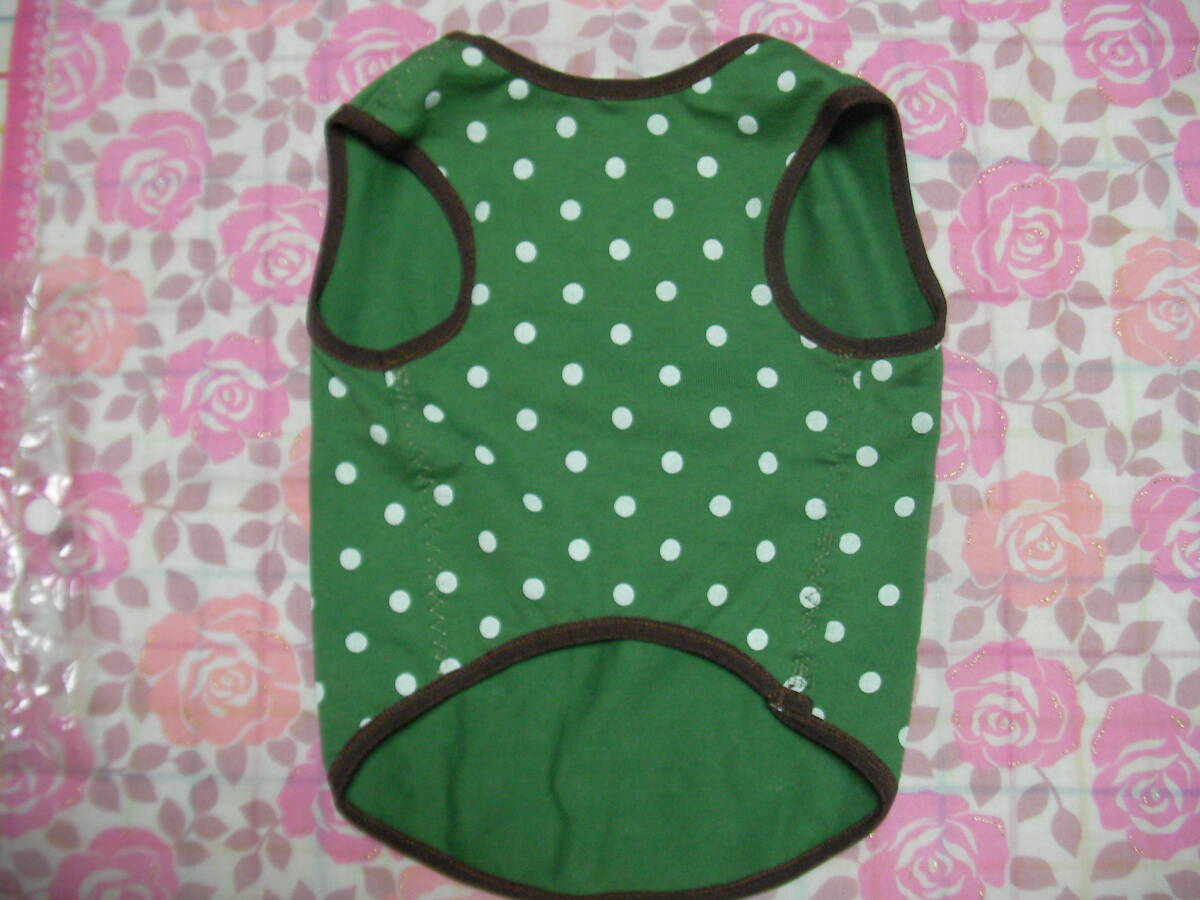 Product name: ハンドメイド☆犬服☆小型犬☆タンクトップ☆リボン☆アップリケ付☆グリーン&水玉模様☆