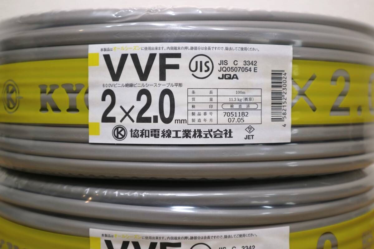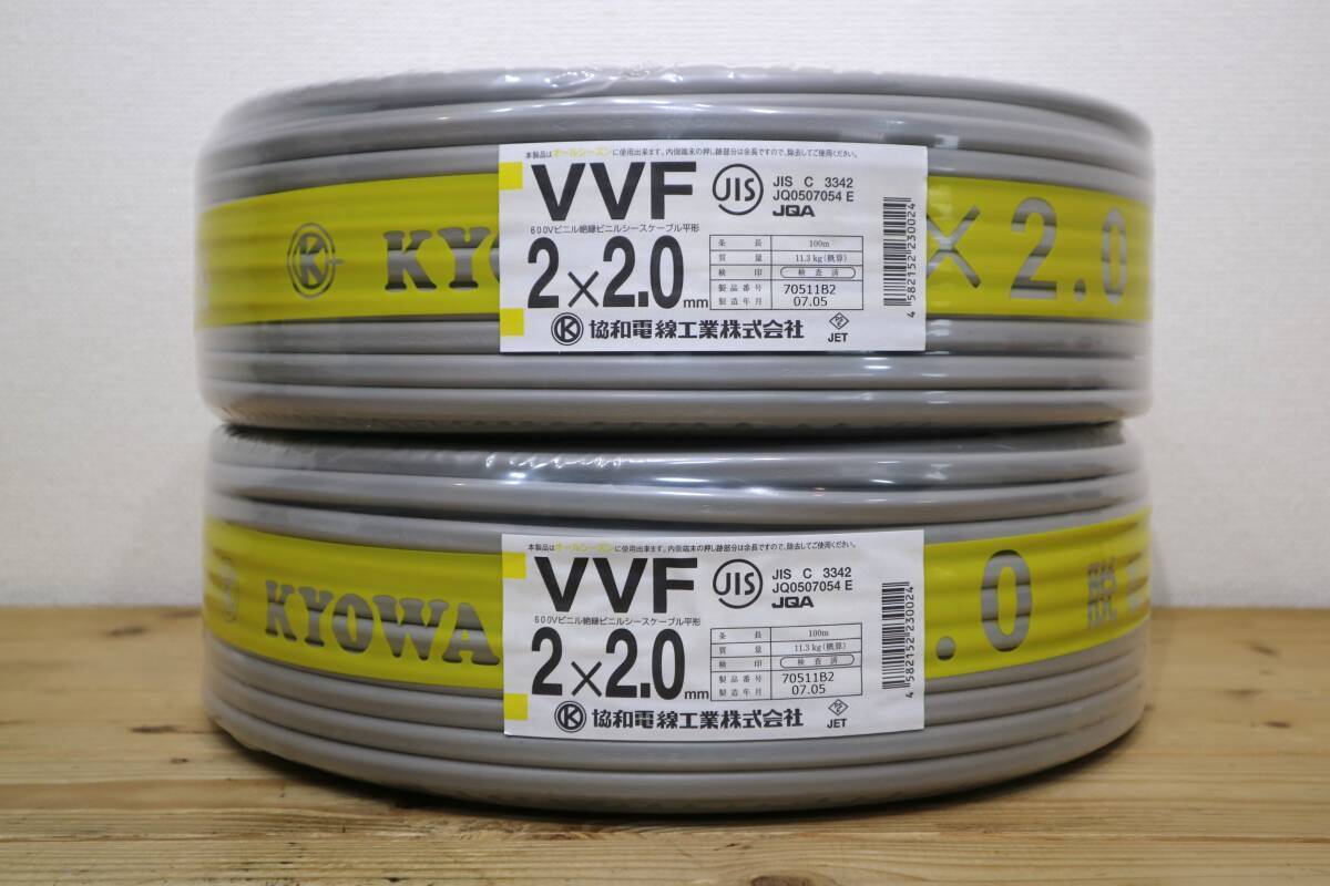 2本まとめて 新品 未使用 協和電線工業㈱ 【 VVF2x2.0mm 】 100m巻