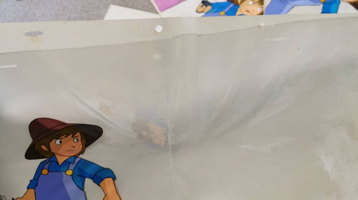 セル画の中央に大きなよれ(画像3枚目)があり、アニーセル画に塗料割れ(画像2枚目)があるなど、状態は大変悪いです。