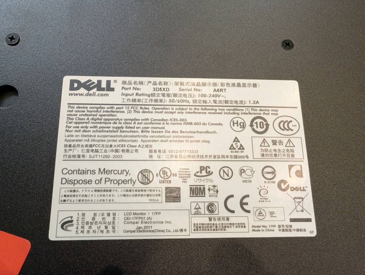 Product name: DELL 1U 17インチTFT ラックマウントコンソール 3D5XD