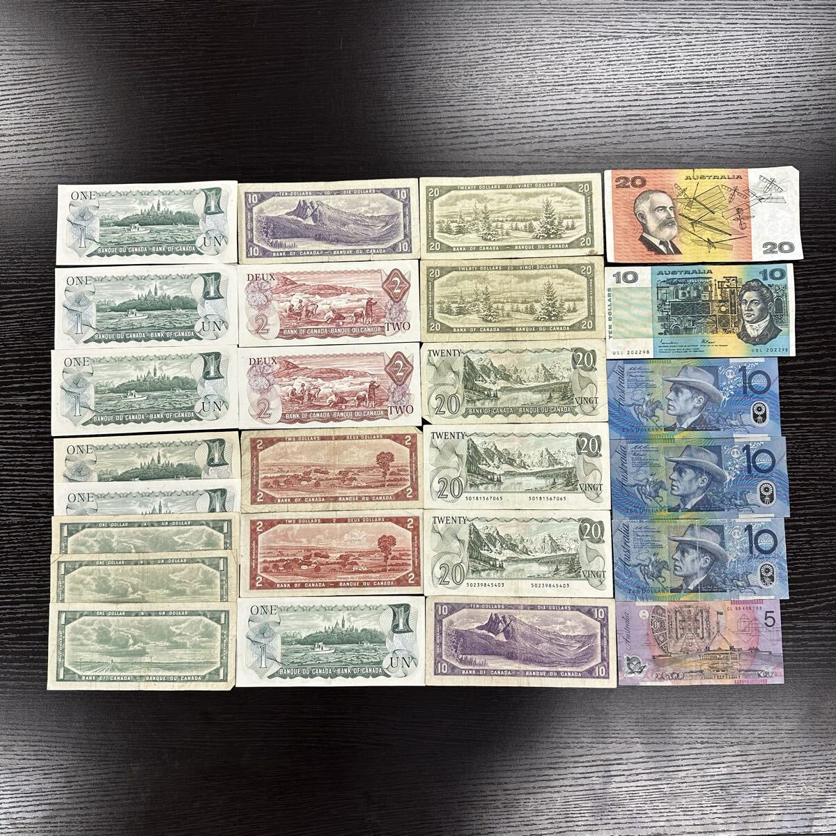 【7白20】1円スタート カナダ 137ドル オーストラリア 65ドルまとめて 27枚 外国 海外紙幣 外国紙幣 1ドル 2ドル 5ドル 10ドル 20ドル