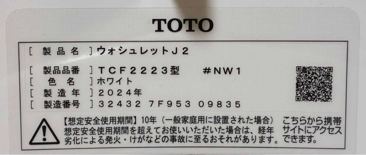 Product name: 【未使用 現状品】TOTO トートー ウォシュレット J2 温水洗浄便座 ホワイト TCF2223 #NW1 2024年製