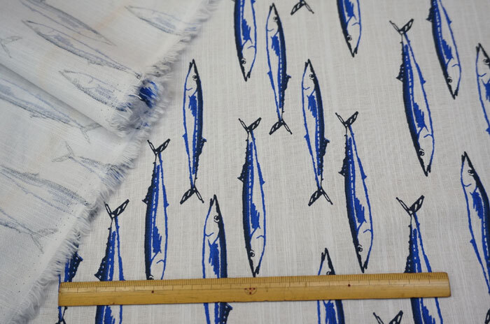 み S 長5.9m W巾 綿100 さんま 柄pt 斑糸織込 白 アロハ シャツ ワンピース ワイドpants ゆかた 甚平 作務衣 手芸 和食店 テーブルcloth