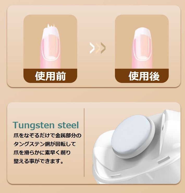 爪をより繊細に磨き。爪をなぞるだけで金属部分のタングステン鋼が回転して