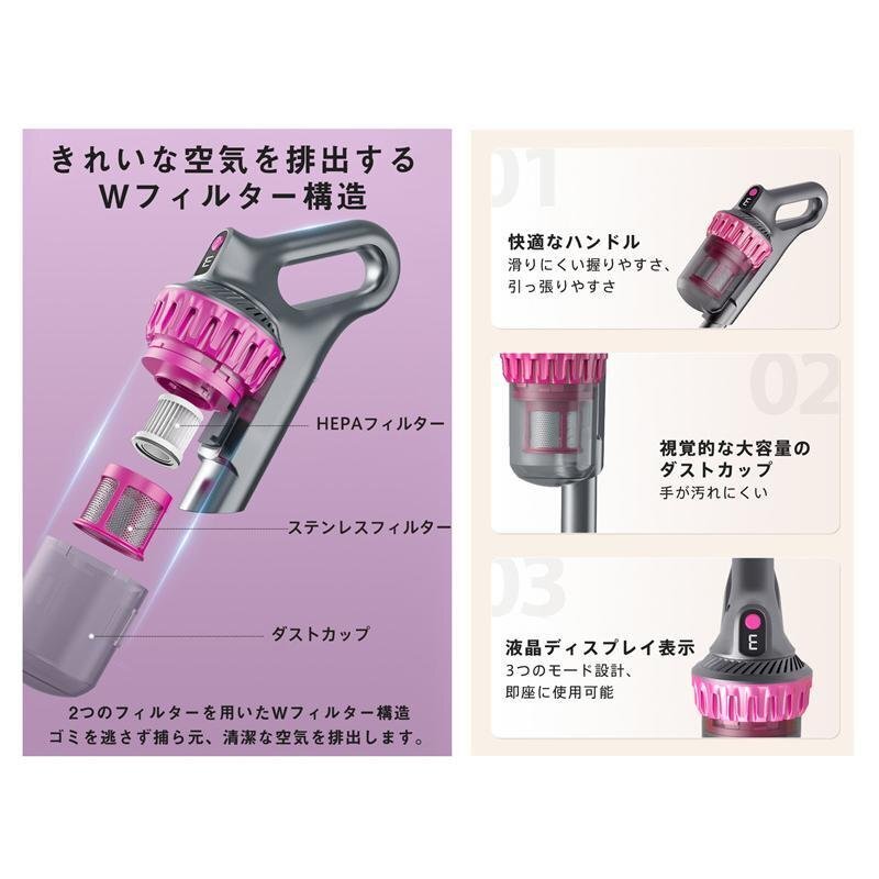 Product name: 掃除機 ハンディークリーナー コードレス 強力 吸引力 充電式 サイクロン 28000pa 3WAY 軽量 静音 小型 ダニ駆除 省エネ 日本語説明書