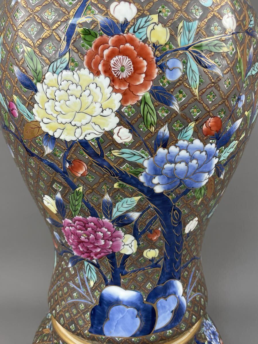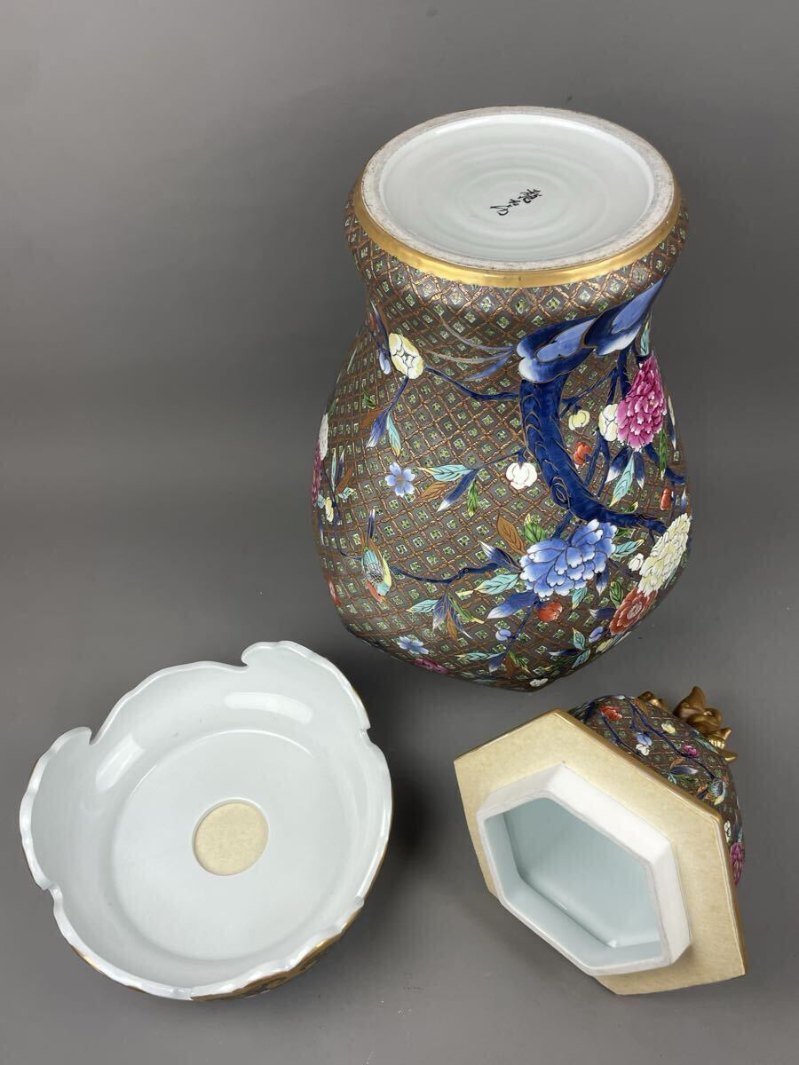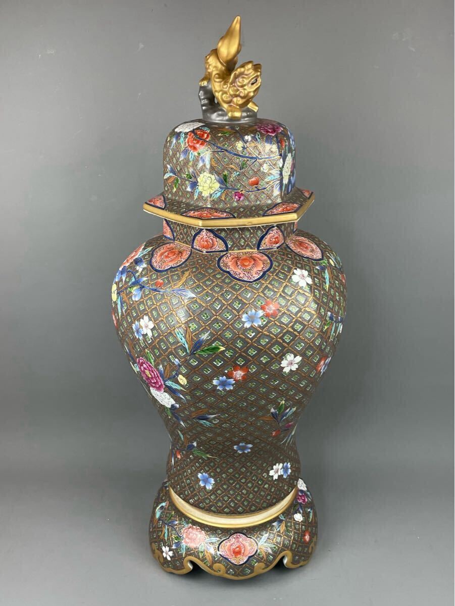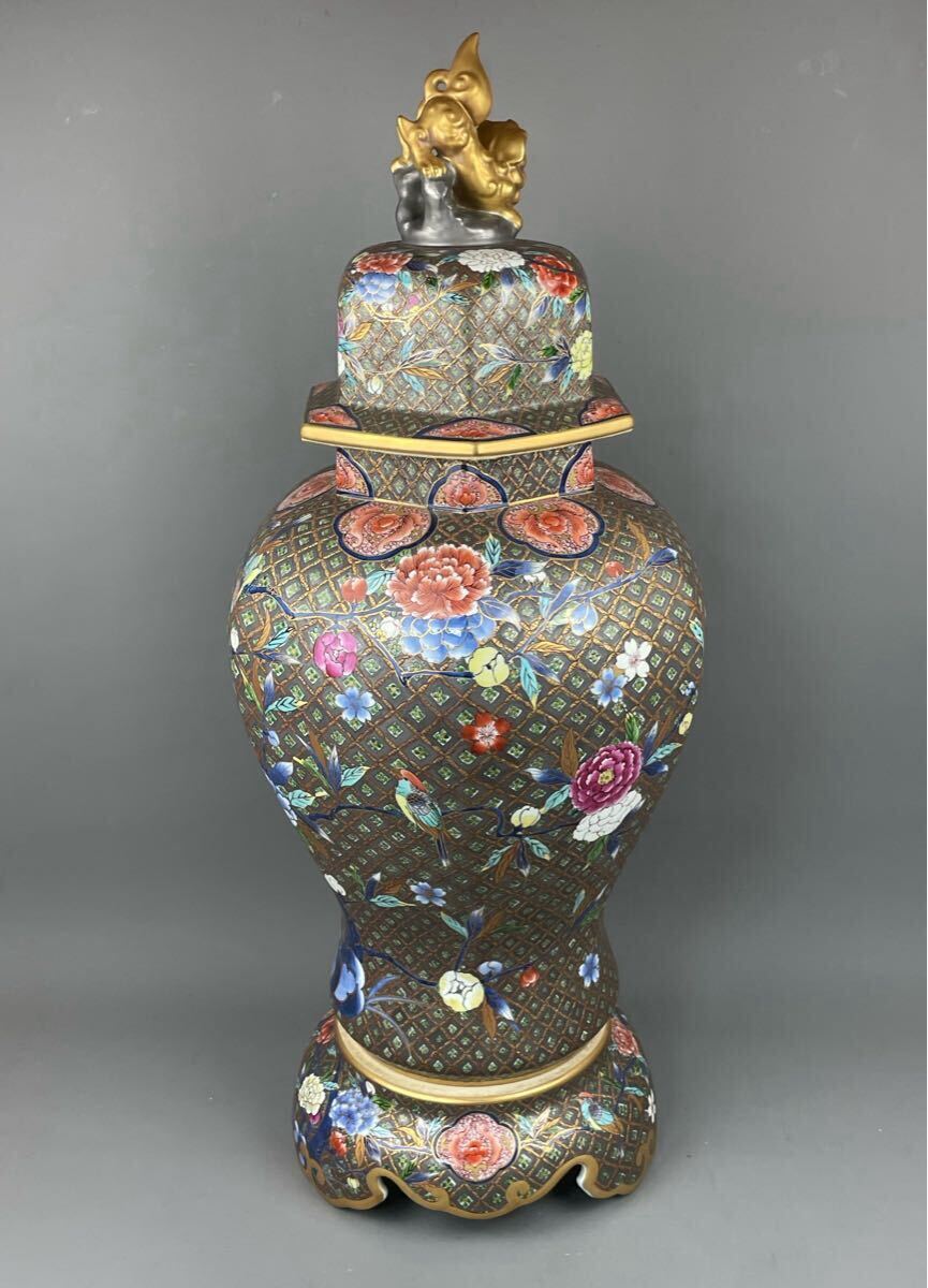 Product name: 有田焼 龍右衛門 極上細密絵付 豪華絢爛 錦絵花図 沈香壺 本人作 金獅子摘 金彩 飾壺 特大花瓶 古美術品 龍右ェ門作 高さ82cm三段壺 在銘