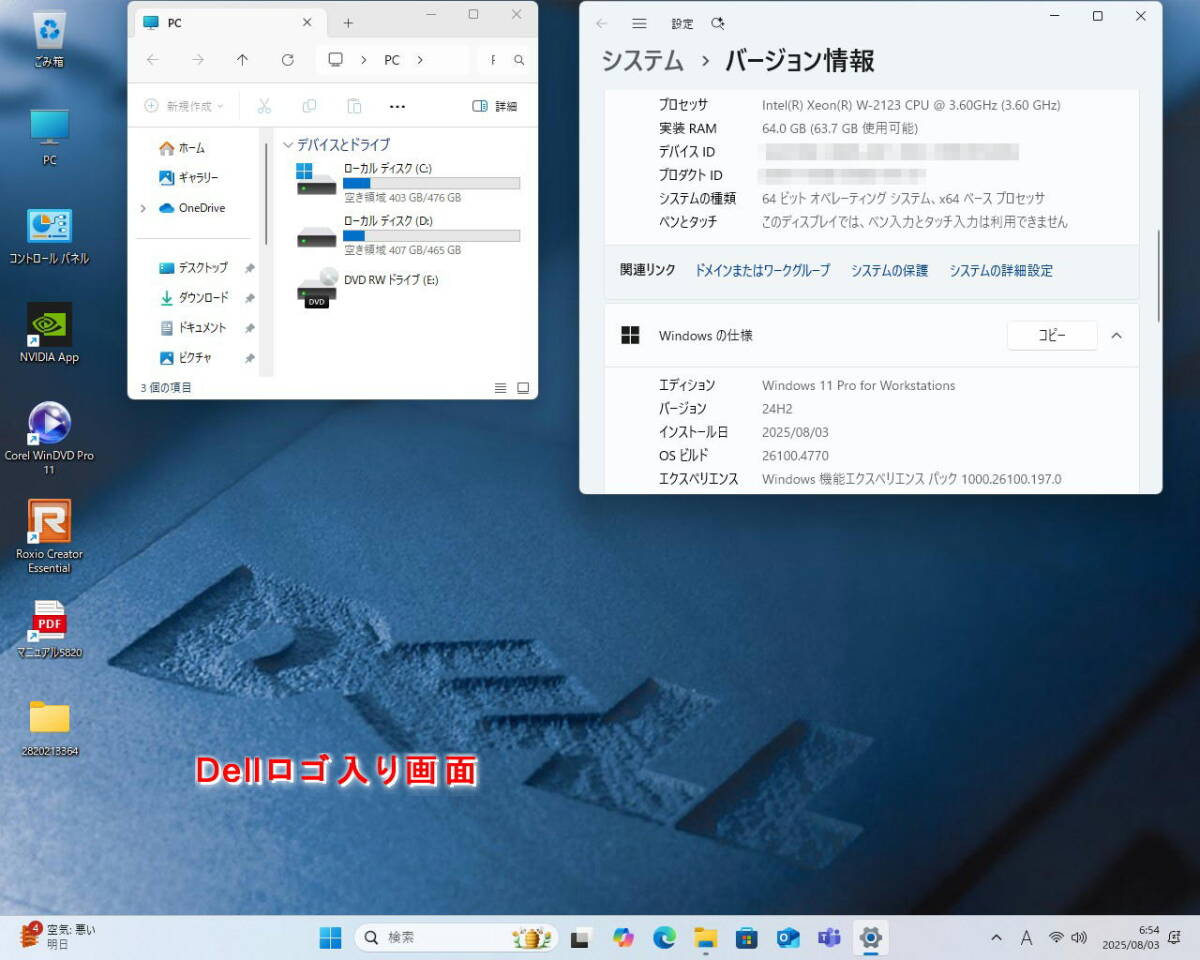 スペック OS ; Windows11 Pro for Workstations 24H2