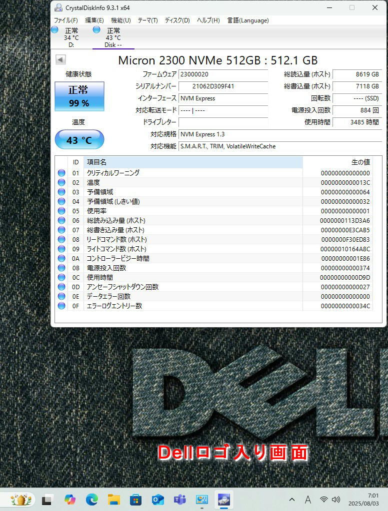 SSD及びHDDは CrystalDiskInfoにて 『正常』 と判定されております。