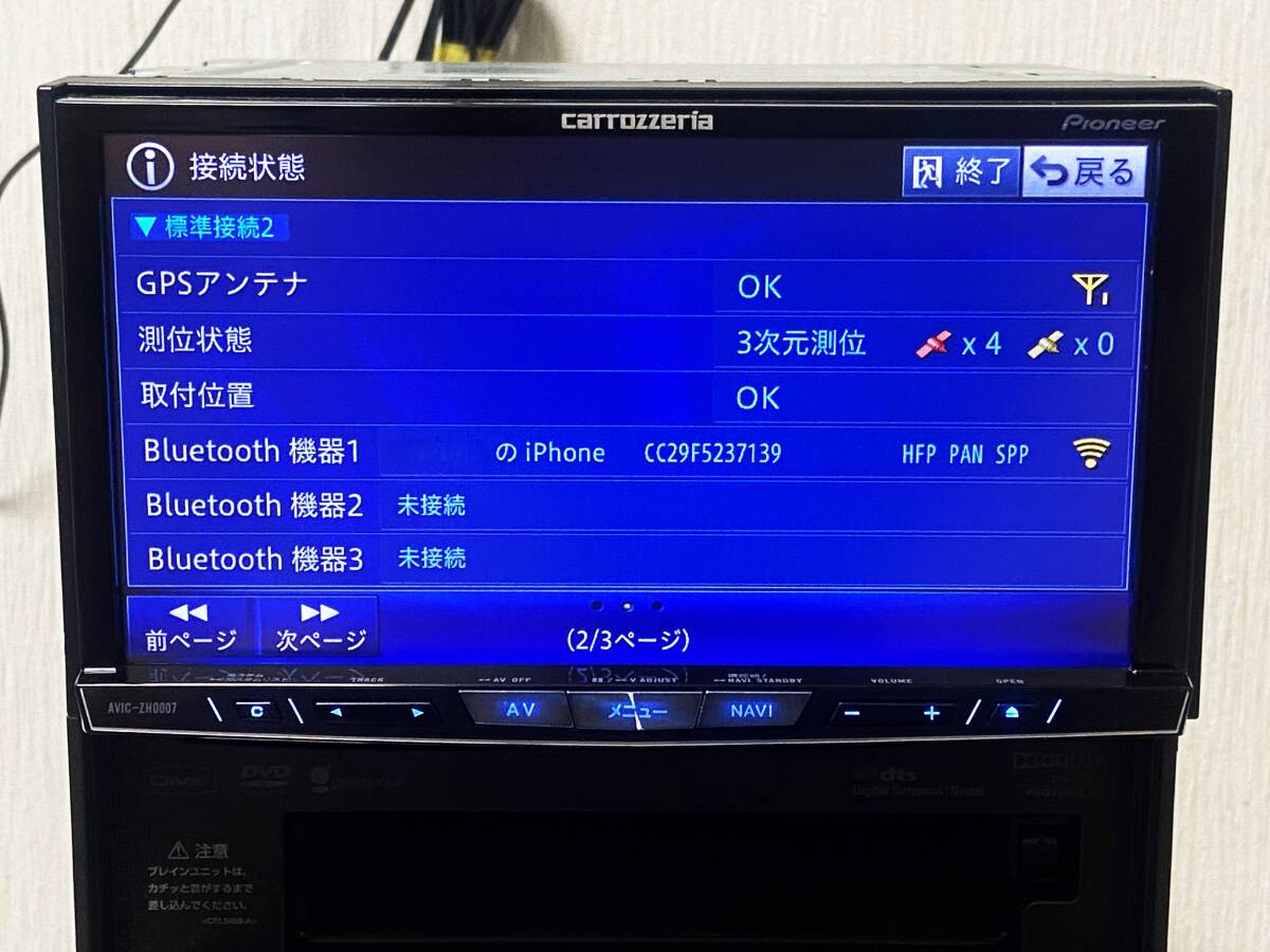 DVD、CD、MSV録音再生OK、Bluetooth接続確認、スイッチ類もタッチパネルも問題なさそうです。GPS受信もOKです。