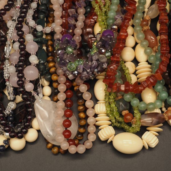 (3N0803) 1円 天然石 ネックレス 30本 大量セット ガーネット ペリドット アメジスト 瑪瑙 水晶 シルバー 等 まとめて