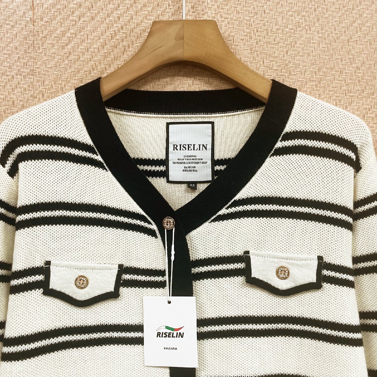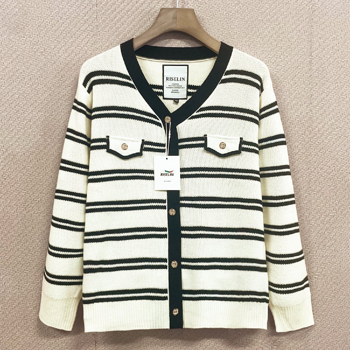 Product name: 上品ヨーロッパ製※定価5万◆ブルガリア発※RISELIN セーター ウール混 ニット 柔らか ストライプ柄 シンプル Vネック レディース 秋冬 M