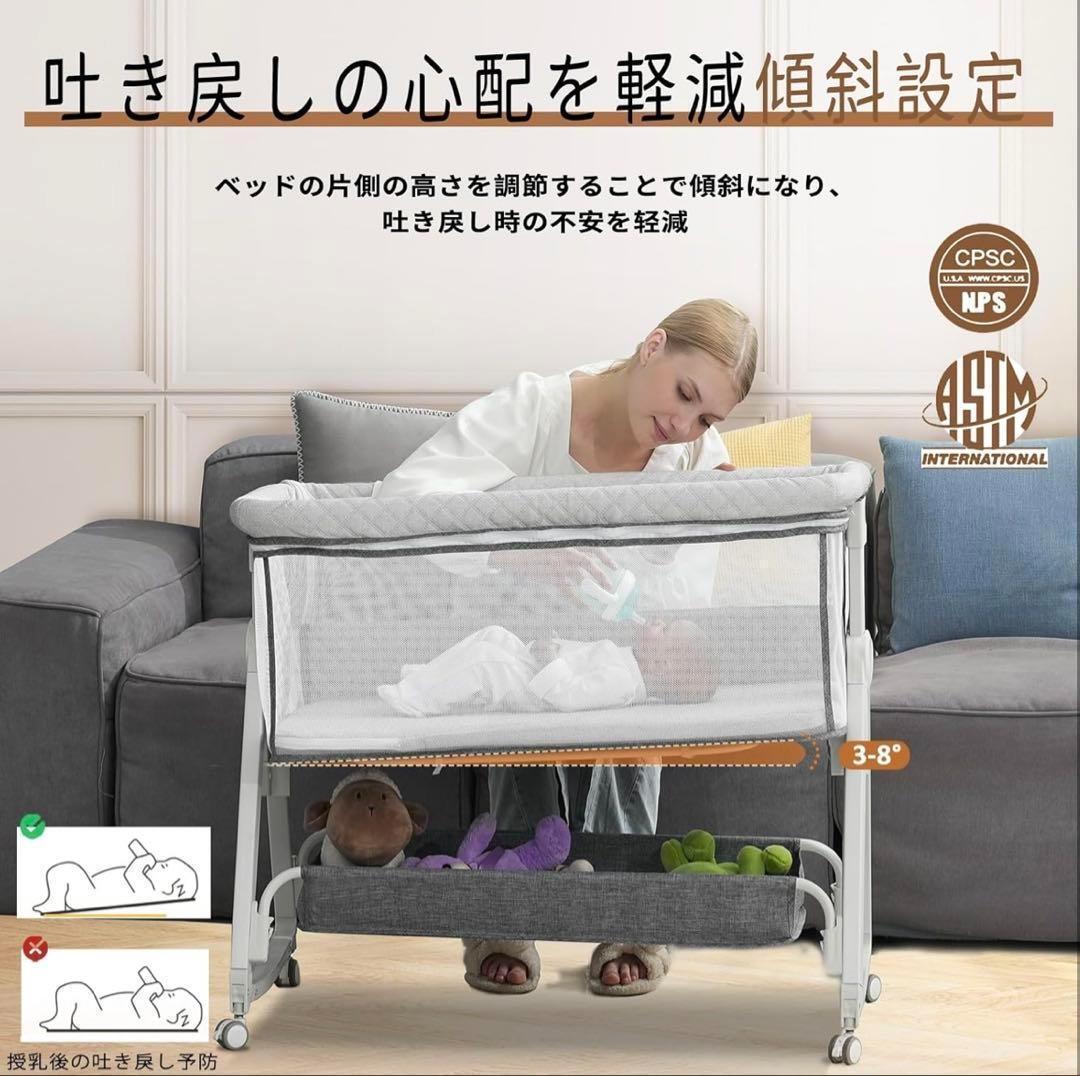 Product name: ベビーベッド 添い寝ベッド グレー 乳児用ベッド 多機能 高さ6段階調節可能