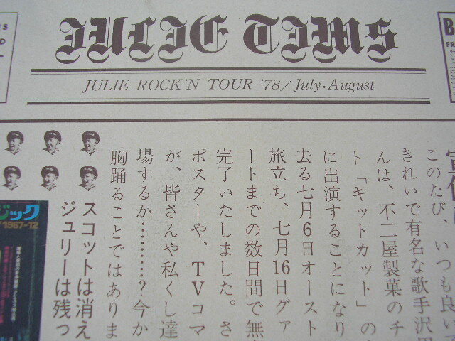 12☆沢田研二 告知 チラシ JULIE ROCK'N TOUR '78 1978年