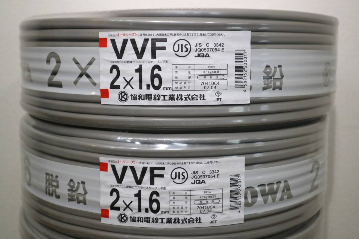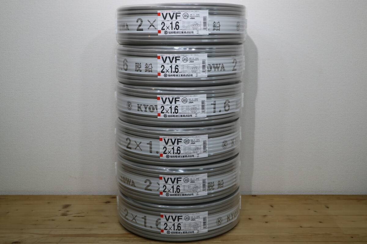 6本まとめて 新品 未使用 協和電線工業㈱ 【 VVF2x1.6mm 】 100m巻