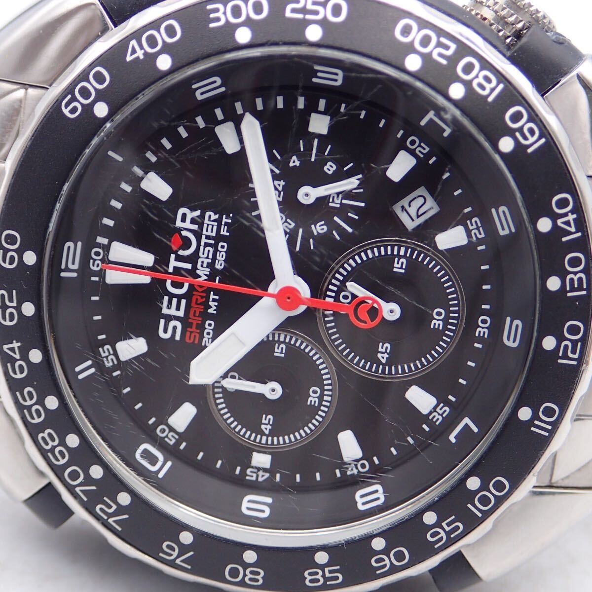 お07168/SECTOR セクター/シャークマスター/クオーツ/メンズ腕時計/200M/クロノグラフ/スモセコ/文字盤 ブラック