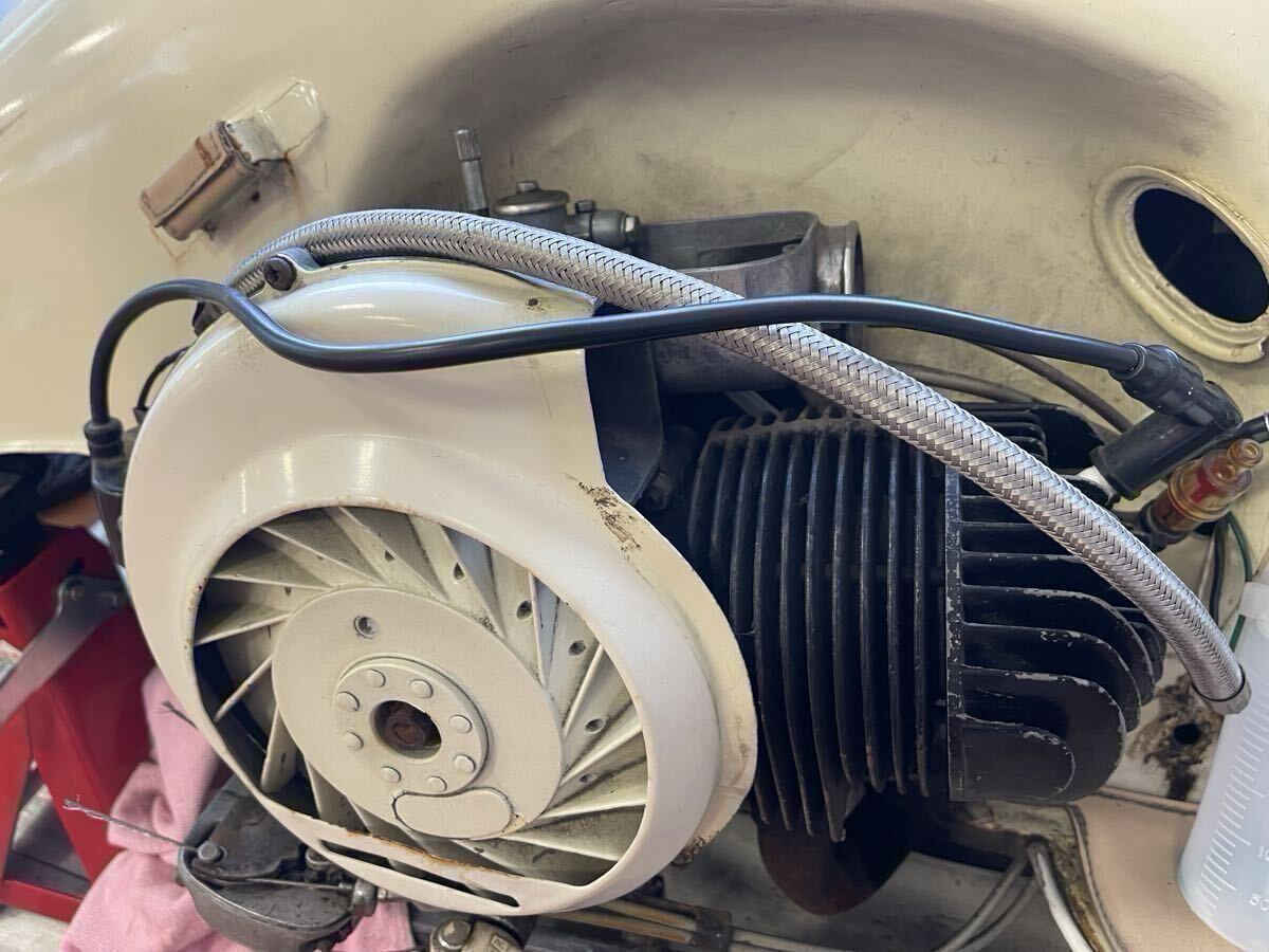 まず、エンジンですが、ガソリンをキャブに直接流し込む方法で久々にかけましたが、一応エンジンはかかりました。