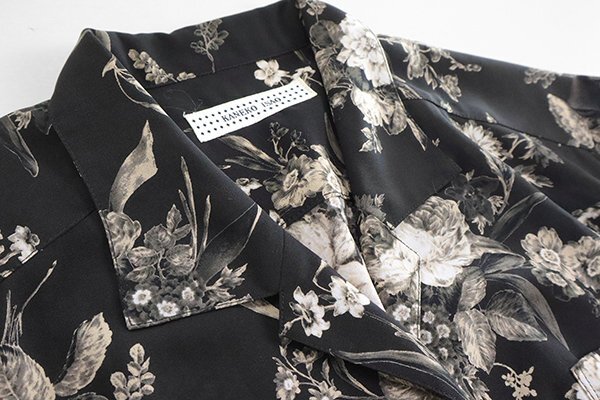 90s KANEKO ISAO ◆ 花柄 オープンカラー 半袖シャツ 黒 モノクロ モノトーン アロハシャツ ヴィンテージ オールド カネコイサオ ◆47/G081