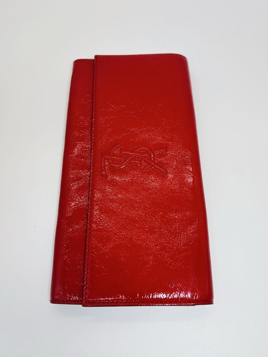 Saint Laurent(サンローラン)のレッドカラーが目を惹く、パテントレザークラッチバッグの出品です。