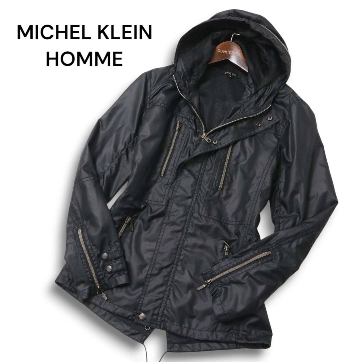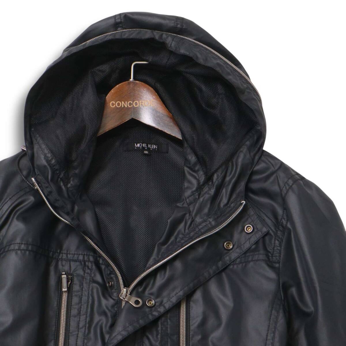 Product name: MICHEL KLEIN HOMME ミッシェルクラン オム 裏メッシュ★ 微光沢 フーディー ジャケット ブルゾン Sz.46 メンズ 黒