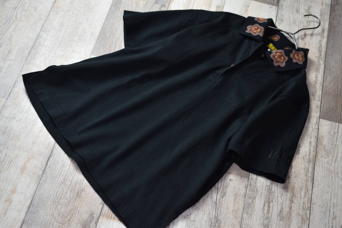 Product name: FEILER フェイラー 襟柄入りポロシャツ 黒色 刺繍ロゴ入り