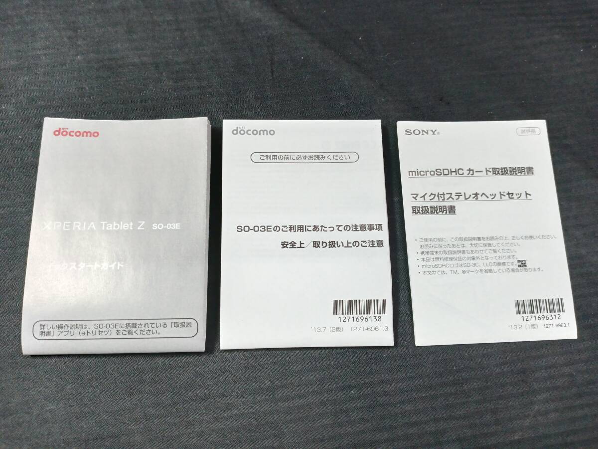 型式 docomo Xperia Tablet Zシリーズ SO-03E